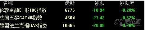 環(huán)境,這轉(zhuǎn)化成為較低水平的政策利率。德國(guó)DAX 30指數(shù)收跌0.20%,本周累跌0.03%。法國(guó)CAC 40指數(shù)收跌0.52%,本周累漲0.34%。英國(guó)富時(shí)100指數(shù)收跌0.28%,本周累漲0.67%。