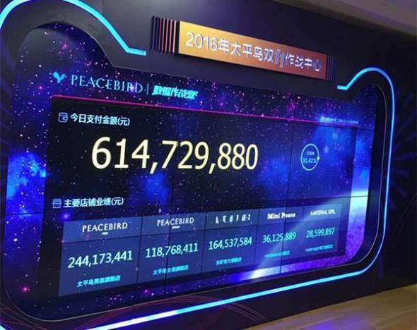 2016年天貓雙11當(dāng)日,太平鳥(niǎo)服飾全品牌雙十一銷(xiāo)售額突破6.14億元,同比增長(zhǎng)61%,位列服飾全品類(lèi)第二。當(dāng)天零點(diǎn)6分,太平鳥(niǎo)的成交額就突破了1億元,2點(diǎn)20分突破3.83億元,達(dá)到2015年雙11單日銷(xiāo)售額。