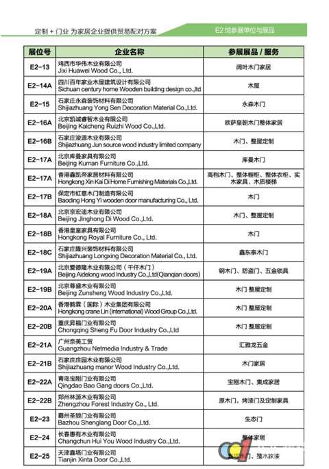 展品/服務(wù):木門、衣柜、櫥柜、書柜、門廳柜、酒柜、墻板、整體家居等