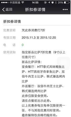 據(jù)介紹,此次棒約翰接入鮮老虎適逢菜品出新,因此棒約翰在卡券制作上主推新品折扣券,西班牙那吞魚(yú)比薩,泰式風(fēng)味鱈魚(yú)比薩等新品比薩都可以享受到獨(dú)有的折扣,再加上鮮老虎的分享禮包給好友功能,瞬間將棒約翰的新品折扣卡券發(fā)滿朋友圈。