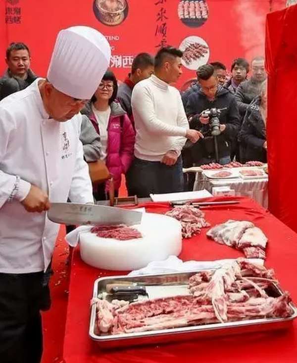 冬至這天,陳立新大師現(xiàn)場揮動寶刀不到三分鐘,將一頭來自內(nèi)蒙古的肉羊,進行了現(xiàn)場制作,根據(jù)羊的特點,進行了整骨肉分離、部位精選、肉片切制等。