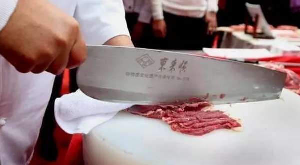 “東來順的涮羊肉只選擇這五個部位。”陳立新解釋,涮羊肉是東來順代表性菜肴,切肉是關(guān)鍵環(huán)節(jié)。半公斤羊肉可切20厘米長8厘米寬的肉片80到100片,每片僅重4.5克,且片片對折,紋理清晰,投入湯中一涮即熟。“切羊肉又講究刀工、外形,所以羊肉需凍得有一定的硬度才能切。”
