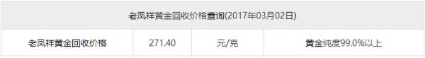 今日老鳳祥黃金回收價格最新官方報價,今日老鳳祥黃金回收價格最新多少一克(2017年03月02日)參考價格。