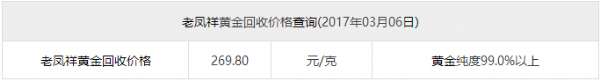 今日老鳳祥黃金回收價(jià)格最新官方報(bào)價(jià),今日老鳳祥黃金回收價(jià)格最新多少一克(2017年03月06日)參考價(jià)格。