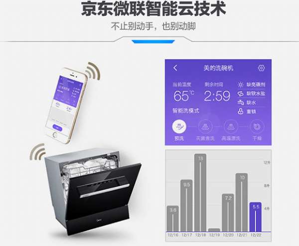 智能判斷餐具臟污程度,自動匹配洗滌模式,讓洗碗更簡單;連接智能微連APP,手機遠程遙控,隨時隨地掌控洗碗狀態,選擇程序,進行智能洗碗,同時水耗、能耗用量也能查看,體驗多種吸毒樂趣。