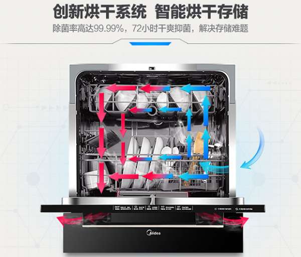 創新烘干系統,智能雙重干燥系統,內置主動風干系統,引入外部冷空氣,排除內部潮濕水汽,快速干燥餐具,智能啟動,排出水汽和霉菌,保持餐具72小時干爽,除菌率高達99.99%,解決存儲難題。