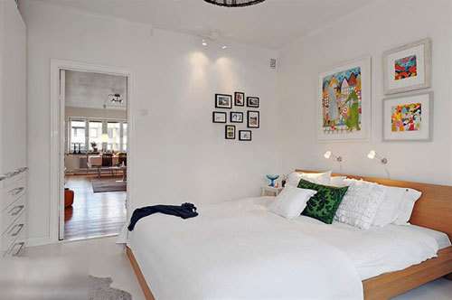 照片墻、和裝飾畫給白色的墻面顏色添了很多活力。