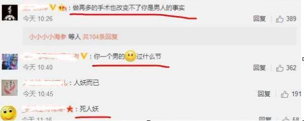 網友評論:做再多的手術也改變不了你是一個男人的事實,你是一個男人還過什么節日啊!