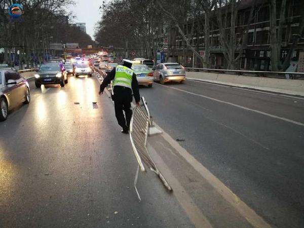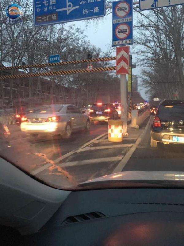 今天(2月17日)早上6點30左右,車友王先生爆料:金水路 新通橋下橋口 有一輛車停在路邊,護欄零零散散占據西向東車道。