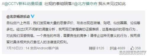 《仙劍奇?zhèn)b傳6》發(fā)售后,受到了諸多爭議,從最開始的游戲無法激活,到后來玩家發(fā)現(xiàn)游戲的畫面依舊停留在五年前的水準(zhǔn),然而游戲?qū)C配置要求卻在與時(shí)俱進(jìn),甚至有玩家表示Dual Titan X Sli游戲都只有30-40FPS,而@CCTV新科動(dòng)漫頻道也緊隨潮流發(fā)布了兩條微博吐槽。