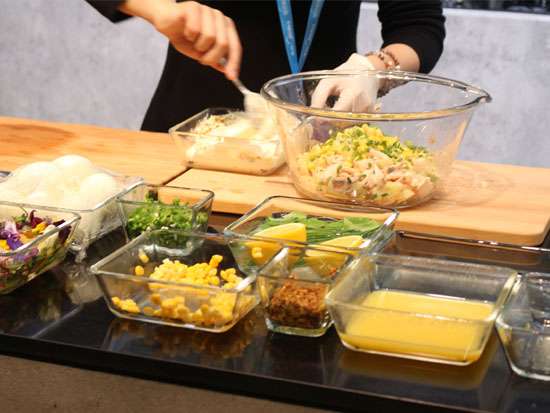 不一會功夫,大廚又做出了一道土豆蔬菜沙拉,ps:土豆是西門子iQ700系列嵌入式微波烤箱和蒸汽烤箱提前蒸制好的,筆者離老遠就聞到了,清香四溢!