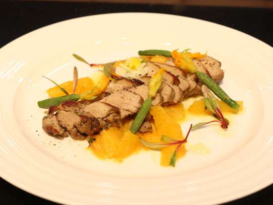 沒多一會功夫,大廚已將一份精致秘制牛排擺盤完成了,趕緊湊上來看看,先看這誘人的色澤,再聞著香味,還等什么,趕緊求大廚先給來一口吧!恩!細細咀嚼一口,味道簡直完美!外酥里嫩的牛肉完全征服了本小編的味蕾!