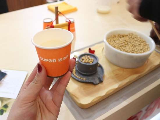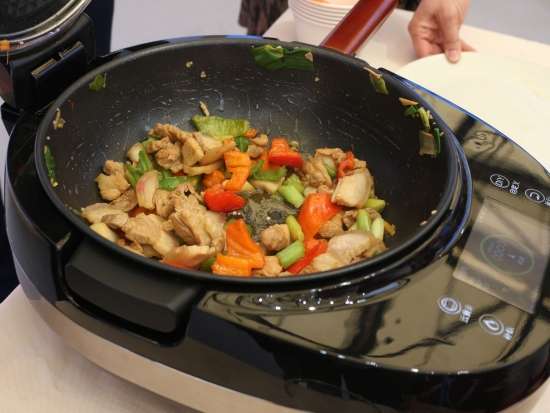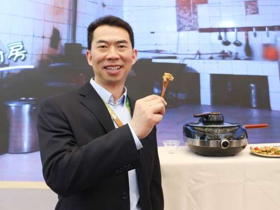 土豆蔬菜沙拉制作過程 其間,大廚還為我們介紹了這款烤箱,西門子iQ700系列嵌入式微波烤箱和蒸汽烤箱搭載了“家居互聯(lián)”功能。通過手機上的“家居互聯(lián)”應(yīng)用程序,用戶可隨時查看和操作烹飪電器,遠程操作。西門子iQ700系列烤箱和蒸箱還特別搭載了為中國消費者量身定制的烹飪食譜。用戶只需在“家居互聯(lián)”應(yīng)用程序上選擇心儀的菜肴,應(yīng)用程序即刻將相應(yīng)食譜傳輸至烤箱或蒸箱。只需放入烹飪食材,設(shè)備便可啟動自動烹飪,幫用戶省去來回設(shè)置程序和溫度的煩惱,輕松坐享多種美食,該產(chǎn)品無疑讓各位吃貨朋友省了不少心,輕松秒變大廚! 土豆蔬菜沙拉完成 看完、吃完這幾道硬菜,咱是不是再去尋找點其它美食!緊接著筆者聞著香味來到了九陽的展臺! 剛來小編還很納悶,只聞其味,不見其人,這到底是誰在做飯?定睛一看,原來是九陽最新推出的這款炒菜機器人自己在做飯!這酷炫新品簡直亮瞎了我的眼球,不用人手翻炒,只需幾分鐘就能獨立完成炒紅燒肉的制作,真是厲害厲害! 本以為只有小編好這口,在九陽的展臺上我竟然看到了一個熟悉的背影,我大家電網(wǎng)的呂老師也來了,請問呂老師您是不是也是聞著香味找來噠!好了,話不多說,趕緊讓我們專業(yè)的美食評審給品鑒一下吧!吃完一口,只見咱呂老師連連點頭!可見這款九陽智能炒菜機還真有兩下子! 吃了這么多,趕緊找點喝的順順吧!小編非常自覺的來到了蘇泊爾的展臺,展臺上,蘇泊爾為觀眾準備了豆?jié){、果汁等飲品,真心貼心啊! 吃完喝完,小編想賤賤的說一句此次AWE之旅“我很滿意”,不僅見識了酷炫的廚電產(chǎn)品,還品嘗了各種美味,心里甚是滿足!
