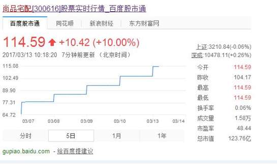 \u00A0全國(guó)家居定制企業(yè)巨頭尚品宅配3月7日在深圳證券交易所敲鐘上市,發(fā)行價(jià)為54.35元,首個(gè)交易日,尚品宅配增長(zhǎng)幅度為43.99%,價(jià)格達(dá)到78.26元。經(jīng)過(guò)連續(xù)漲停之后,截止3月13日上午,尚品宅配股價(jià)最新報(bào)收114.59元每股。尚品宅配憑什么能夠獲得如此豐厚的成績(jī)呢?