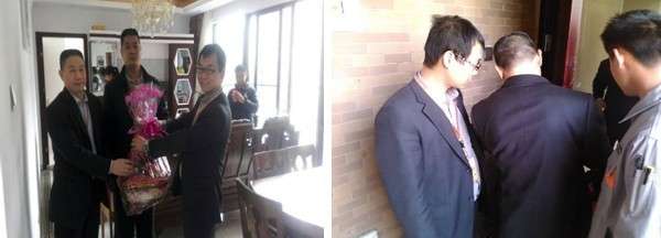 2015年2月5日,山海美域物業(yè)服務(wù)中心的工作人員在項(xiàng)目負(fù)責(zé)人的帶領(lǐng)下,做好充分準(zhǔn)備,為業(yè)主奉上我們精心備好的果籃禮品。業(yè)主一家熱情的給我們分發(fā)喜糖,一同分享喬遷之喜。