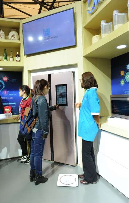 互通互聯是智慧家居發展的最終生態,不同于其他各大廠商僅僅停留在手機終端和線下產品的互聯,美的生活電器志在實現家電之間的互聯、家電與人的互通。美的生活電器在健康飲食管家體驗區中,展示了其智能冰箱和其他廚房電器的互通互聯。消費者只需過輕觸智能冰箱的操作界面,即可實現對冰箱食材和其他家電的交互操作。