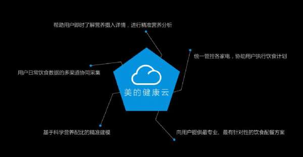 營養和健康是廚房生活的基本落點,也是美的集團自始至終堅持的發力點。為了實現這個基本訴求,美的i+智能廚房生態系統一開始就以美的健康云為依托,建立了完整權威的飲食營養和健康數據庫,為用戶提供多維度全方位的健康咨詢和飲食營養指導。無論是各類食材的營養成分、功效、儲存和搭配技巧,還是各種健康美食的烹飪秘笈,以及海量的養生保健知識,用戶都可以隨時通過健康云獲得專業、權威的解答。此外,i+智能廚房生態系統通過各個智能家電對用戶飲食數據和生理數據(體重、血壓、血糖和心電等)進行采集,并整合多種數據,通過健康云的解析算法來分析、評價每個個體的健康和營養攝入狀況;在上述基礎上,i+智能廚房生態系統反復研究人類的科學營養配比,應用健康云基于用戶多維度數據的營養分析算法和配餐模型,為每個用戶制定最適合自身的飲食配餐方案,提供相應的營養搭配建議,實現用戶營養和健康層面的最大價值。