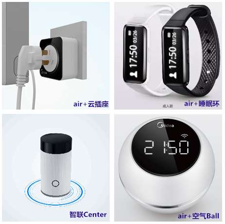 我們以下圖中的美的目前發布的幾款空氣類智能家電、可穿戴設備為例。