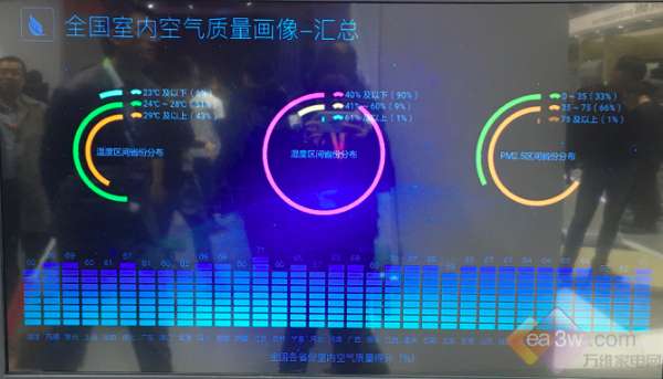 如上圖所示,按照從左至右,從上往下的順序,分別是溫度、濕度、PM2.5、匯總圖。以下是萬維家電網記者從AWE美的展臺發來的視頻報道: