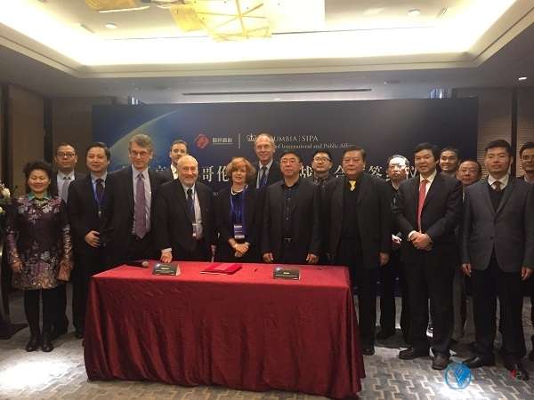 國(guó)軒高科董事長(zhǎng)李縝(右)代表公司與哥倫比亞大學(xué)國(guó)際公共事務(wù)學(xué)院院長(zhǎng)Merit E.Janow簽署戰(zhàn)略合作協(xié)議