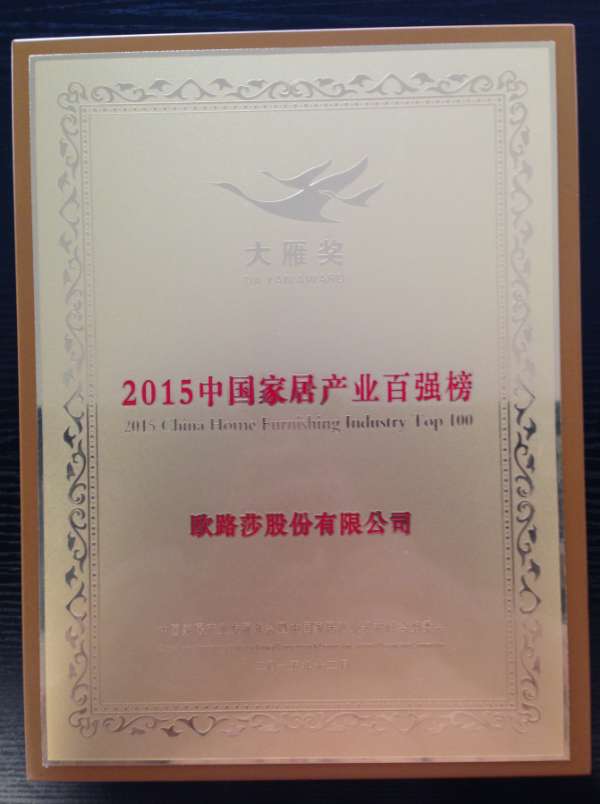 2015年12月27日,第三屆中國(guó)家居產(chǎn)業(yè)發(fā)展年會(huì)暨中國(guó)家居產(chǎn)業(yè)領(lǐng)袖峰會(huì)在北京國(guó)家會(huì)議中心隆重召開,作為中國(guó)質(zhì)量檢驗(yàn)協(xié)會(huì)團(tuán)體會(huì)員單位的歐路莎股份有限公司應(yīng)邀出席盛典,并憑借良好的品牌知名度和美譽(yù)度再次榮登2015年度中國(guó)家居產(chǎn)業(yè)百?gòu)?qiáng)榜。