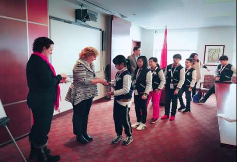 在優(yōu)勝教育游學(xué)部的周到、專業(yè)的安排下,加拿大的歡迎儀式上,勞瑞爾大學(xué)教務(wù)長及國際部主任親自接待,并一一授予孩子學(xué)校勛章表示歡迎,準(zhǔn)備特色課程講義,表達(dá)對中國學(xué)子在加拿大收獲知識和快樂的祝愿;