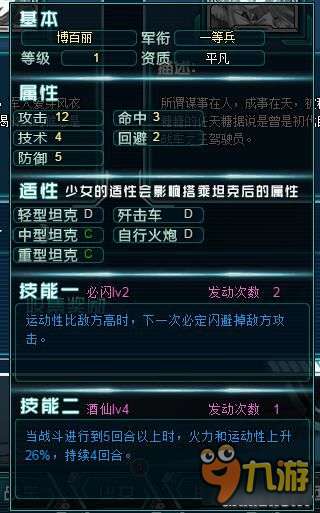 《戰(zhàn)車少女》博百麗適性詳解,少女機(jī)師博百麗屬性一覽。
