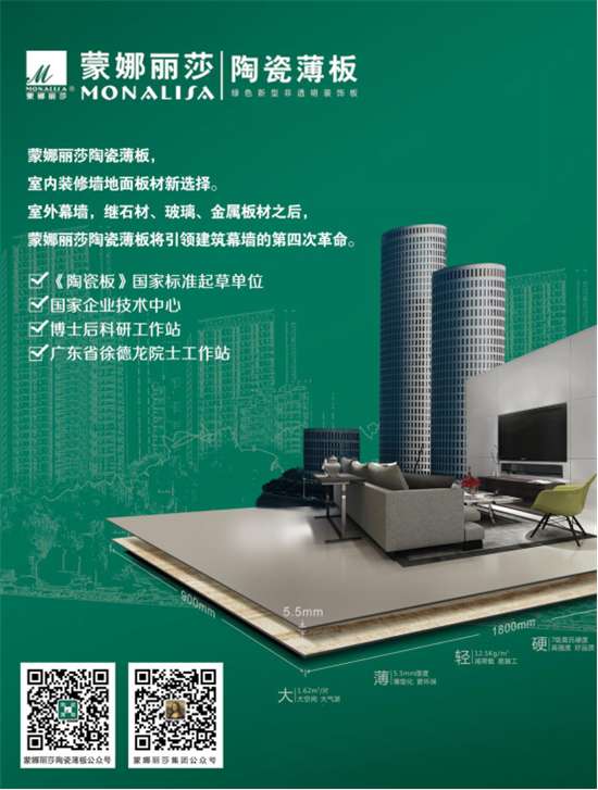 蒙娜麗莎陶瓷薄板自2007年推出國(guó)內(nèi)第一片陶瓷薄板以來(lái),就一直全力推動(dòng)陶瓷薄板在國(guó)內(nèi)市場(chǎng)的普及和發(fā)展。歷經(jīng)十載發(fā)展,陶瓷薄板已經(jīng)成為國(guó)內(nèi)外廠家青睞、消費(fèi)者認(rèn)可的行業(yè)發(fā)展趨勢(shì),以“陶瓷薄板”為主力產(chǎn)品的行業(yè)新拐點(diǎn)已經(jīng)到來(lái)。