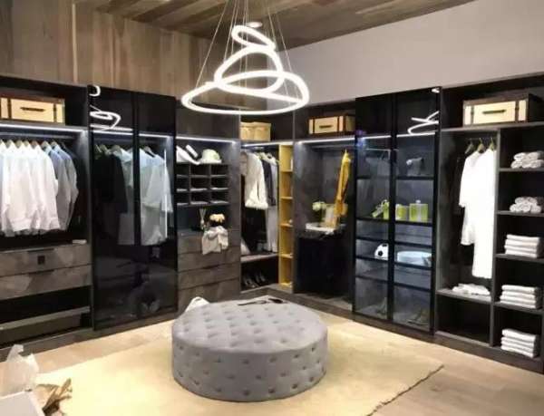 L型衣帽間給人一種穩(wěn)重大方的感覺,盜夢空間使用巖石紋理外觀與玻璃門的組合,于現(xiàn)代感中巧妙糅合自然意趣,走進這個衣帽間,就猶如進入夢境一般,如癡如醉,流連忘返。