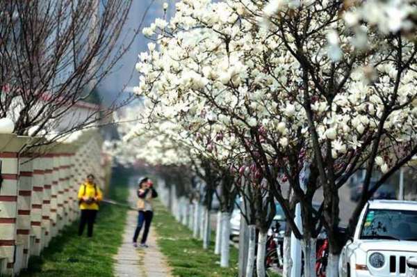 幾個(gè)晴暖天氣,催開了青島海寧路上的玉蘭花,海寧路是一條小路,許多老青島人都不一定熟悉,不過因?yàn)橛裉m花卻讓這條名不見經(jīng)傳的小路家喻戶曉,海寧路上的玉蘭花,從青島浮山山腳下一直延伸到到海邊,恰似山海之間一條錦緞。上百棵玉蘭花芳香撲鼻,白色、粉色、紫色、黃色,玉蘭高枝上的美景讓人們大飽眼福,將島城的春天裝扮得繽紛多彩。20日,青島市城市管理局城市園林局推出第三期花期預(yù)報(bào)——玉蘭花!