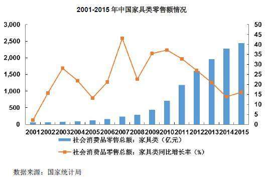 (2001-2015年 中國家具類零售額)
