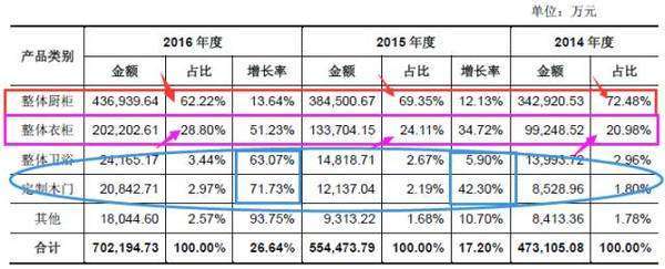 同時(shí),整體衣柜的營收貢獻(xiàn)率不斷提升,2015年和2016年分別同比增34.72%和51.23%,成為公司新的收入增長點(diǎn)。
