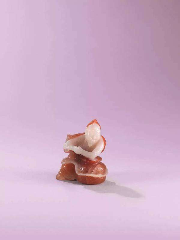 紅白瑪瑙雕漁翁得利把件。圖片:致謝佳士得香港