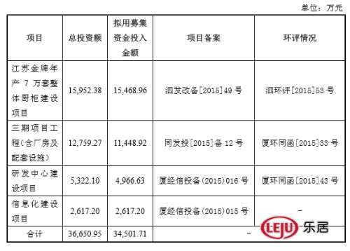 ??招股書顯示,本次擬募集資金3.45億元,用于“江蘇金牌年產(chǎn)7萬(wàn)套整體廚柜建設(shè)項(xiàng)目”、“三期項(xiàng)目工程(含廠房及配套設(shè)施)”、“研發(fā)中心建設(shè)項(xiàng)目”、“信息化建設(shè)項(xiàng)目”。這將能提高金牌廚柜產(chǎn)能,并通過(guò)信息化的建設(shè),產(chǎn)品營(yíng)銷、網(wǎng)點(diǎn)建設(shè)、后臺(tái)信息系統(tǒng)的投入等方面,提高企業(yè)的工作效率。
