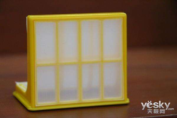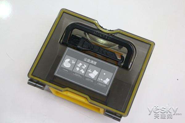 將上部的蓋子打開后,可以看到集塵盒的把手,用戶可直接將集塵盒提出。將集塵盒打開后,可以看到兩層濾網(wǎng),一層是在吸入口處的過濾網(wǎng),一層則是呈現(xiàn)透明膜狀的細過濾網(wǎng)。通過兩層攔截,灰塵等細小粉塵將被禁錮在集塵盒內(nèi)。如果怕集塵盒清掃不徹底,還可使用附帶的刷子清潔。