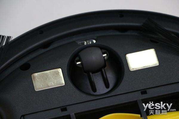 在最上部,布置有一個變向輪,可進行360°的靈活旋轉(zhuǎn),以便于掃地機器人在清掃過程中的多方向旋轉(zhuǎn)。掃地機器人底部還安裝有三組紅外探測裝置,可以對下部的空間進行實時監(jiān)測。當檢測到高于3.8厘米的高度后,掃地機器人將會轉(zhuǎn)向,以避免跌落。