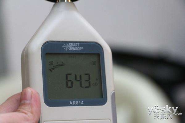 接下來,將模式調(diào)整為重點清掃模式,結(jié)果為63.7分貝。