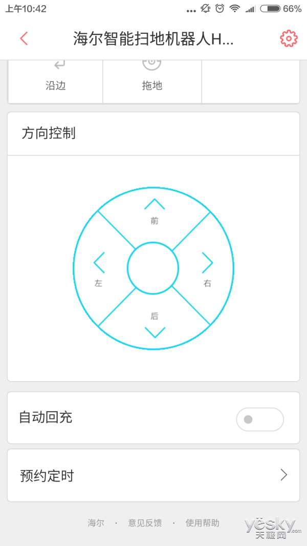 當然,對掃地機器人的操作少不了遙控設(shè)備,海爾大白Plus也自帶遙控器。除此以外,用戶還可以將手機與掃地機器人連接,將手機作為遙控器使用。