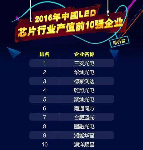 2016年中國LED芯片產值十強企業:三安奪冠