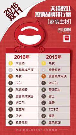 2016年大自然雙十一成交額位居天貓“家裝主材”第一位