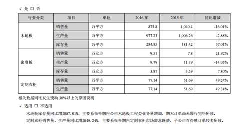 去年德爾地板營(yíng)收6.6億元,同比下降16.54%,營(yíng)業(yè)利潤(rùn)9772.85萬元,較上年同期下降38.91%,拖累了公司整體營(yíng)收增速。德爾方面表示,由于去年木地板工程類業(yè)務(wù)增加,期末訂單尚未履行完畢,導(dǎo)致地板庫(kù)存量同比增加57.01%,且進(jìn)行了部分產(chǎn)品跌價(jià)銷售處理。但隨著未履行完畢的工程訂單有望在今年1季度開始確認(rèn)收入,未來木地板營(yíng)收有望恢復(fù)增長(zhǎng)。