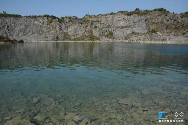 礦坑廢棄后,雨水逐漸積累到礦坑內(nèi),匯成了一汪碧水,讓人心曠神怡。