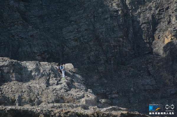 原有的碎石企業(yè)撤離后,當(dāng)?shù)卣偷乩茫瑢U棄礦坑打造成礦山遺址公園。圖為無人機(jī)視角下,礦坑絕壁如同展翅翱翔的雄鷹。