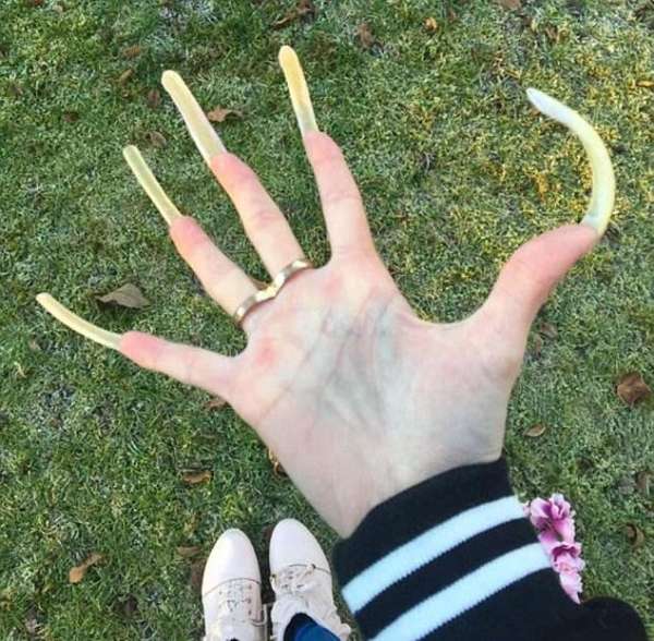 據(jù)英國《每日郵報》4月4日報道,德國16歲的學(xué)生西蒙?泰勒(Simon Taylor)上次剪指甲已經(jīng)是2014年的事了,2015年5月她在照片分享軟件Instagram上分享了她指甲的照片,俘獲了很多粉絲。現(xiàn)在她的指甲已經(jīng)有6英寸(約15.2厘米)長,可是最近考試時沒法握住鋼筆讓她很痛苦。