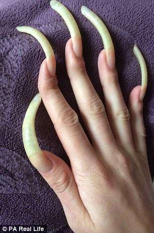 于是之后她費了很大功夫去適應(yīng)長指甲的生活:在家里小心翼翼地穿衣服,洗澡。每周花費數(shù)小時用指甲加固劑護理指甲,給指甲做彩繪時也要涂護甲油, 每天用棉簽清潔指甲底部。在學(xué)校用指關(guān)節(jié)打字,體育課不參加球類運動等等。