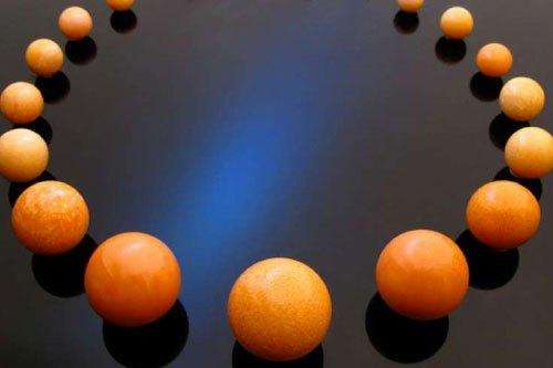 \u00A0\u00A0\u00A0 曾先生家中的這顆“龍珠”,直徑約為1厘米,顏色橙黃,表面呈不規(guī)則白色云狀紋路,在燈光下有淡淡光澤。