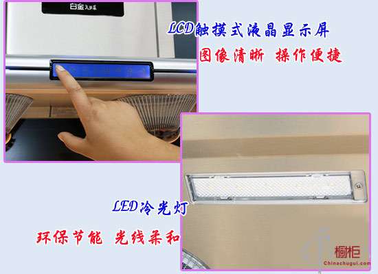 本款吸油煙機采用LCD觸摸式液晶顯示屏,圖像清晰,操作也很便捷,輕輕一觸,即可隨心所欲。測評員嘗試從不同的角度看顯示屏,畫面顯示都很清晰。小于3瓦的LED冷光照明裝飾燈,光線舒適,環(huán)保節(jié)能,長時間開燈也不會發(fā)燙。