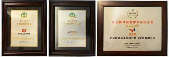 紅黃藍教育機構(gòu)通過層層篩選和審核,在3341家備案企業(yè)中脫穎而出,榮獲國家首批商業(yè)特許經(jīng)營體系4A級評定,同時榮獲“2016年度中國優(yōu)秀特許品牌”。紅黃藍在2016年7月推出的創(chuàng)新品牌——北京紅杉優(yōu)幼聯(lián)盟以創(chuàng)新的商業(yè)模式和快速發(fā)展的態(tài)勢,一舉榮獲“2016年度中國連鎖新銳獎”。