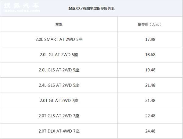 \u00A0 \u00A0 2017年3月16日,東風(fēng)悅達(dá)起亞KX7尊跑于南京國(guó)際博覽中心正式上市。起亞KX7尊跑是東風(fēng)悅達(dá)起亞旗下全新中型SUV,新車(chē)基于起亞老款索蘭托平臺(tái)開(kāi)發(fā),基于國(guó)內(nèi)市場(chǎng)需求賦予了全新的造型、座椅布局及諸多配置,搭載2.0T、2.0L以及2.4L三款發(fā)動(dòng)機(jī),發(fā)動(dòng)機(jī)進(jìn)行匹配6擋手自一體變速箱,提供5座版和7座版;此次共有7款車(chē)型上市,售價(jià)區(qū)間為17.98萬(wàn)元-24.48萬(wàn)元。