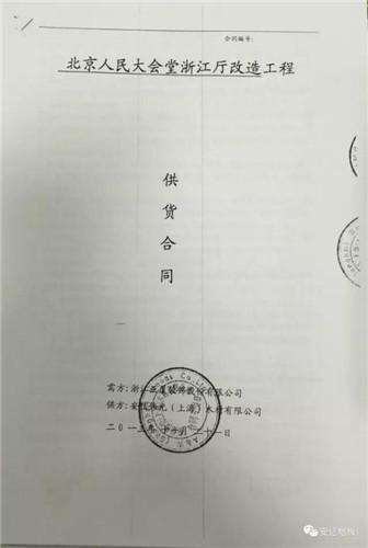 ▲北京人民大會(huì)堂浙江廳改造工程安信供貨合同